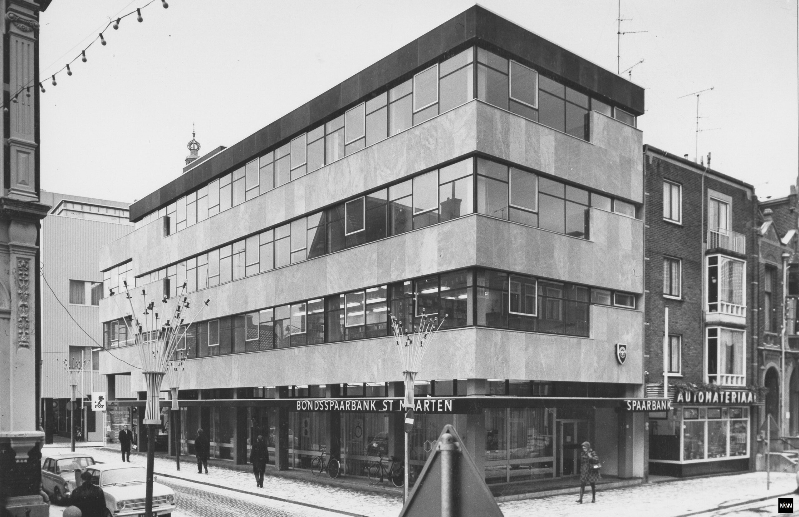 Dit gemeentelijke monument, dat vroeger dienst deed als bankgebouw, heeft een enigszins introverte uitstraling. De nieuwe functies van winkelruimte, kiosk en wonen op de verdiepingen vragen om meer openheid en brengen een frisse, levendige sfeer met zich mee. In combinatie met de status van monument is deze transformatie een mooie uitdaging, waarbij we de buitenzijde in oude glorie herstellen na alle veranderingen van de afgelopen decennia.