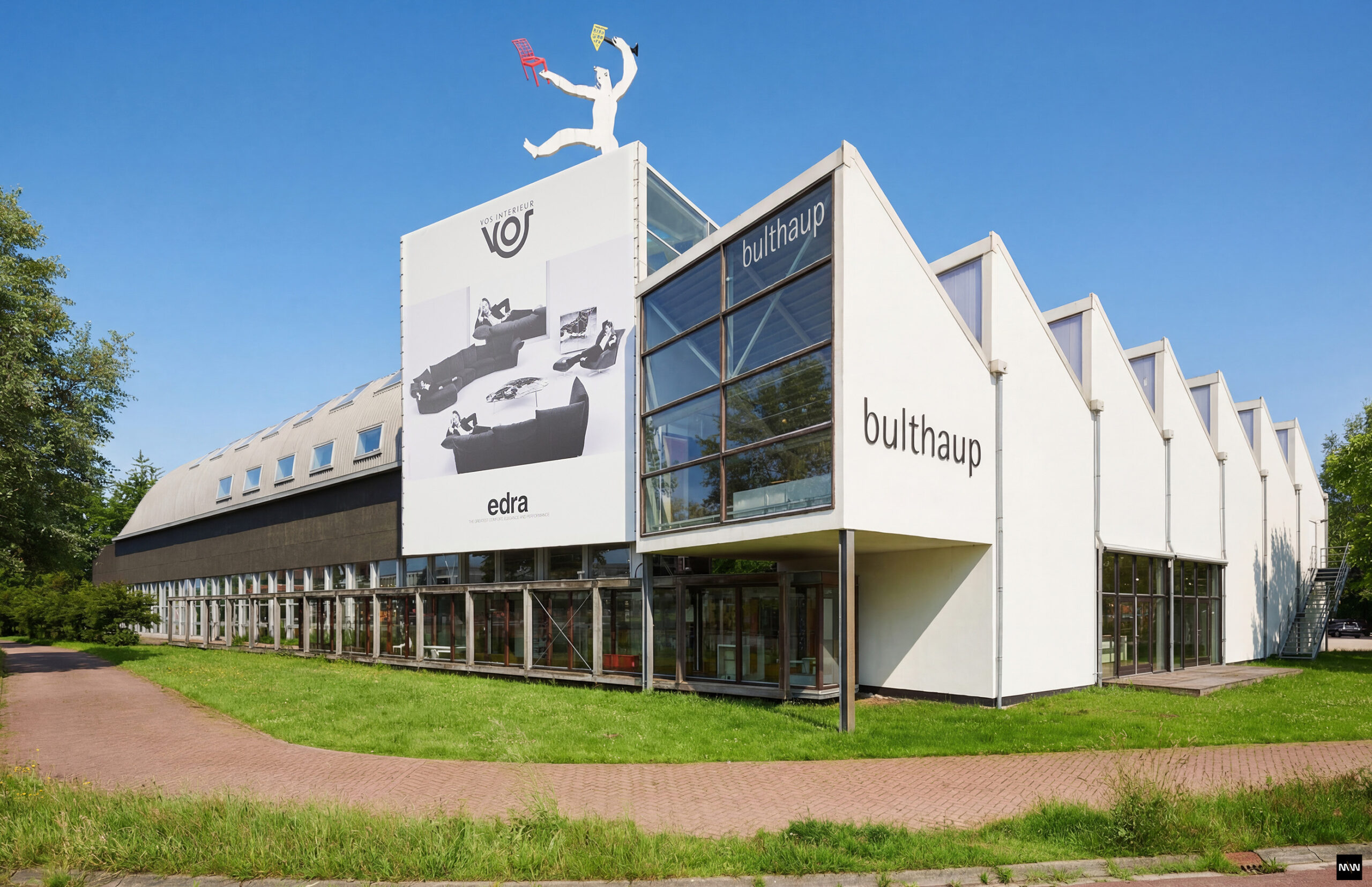 Al ruim dertig jaar is het zevenpuntige Maupertuus, met de twaalf meter hoge windvaan van Ingo Maurer, een herkenningspunt voor iedereen die via de A7 de stad binnenrijdt. Het ontwerp voor designwinkel Vos Interieur van Bart Vos uit 1994 blijft onmiskenbaar aanwezig, en wordt op een zorgvuldige manier naar een nieuwe tijd getild. Drie jaar geleden kochten we het pand met de ambitie het gebouw te herwaarderen én toekomstbestendig te maken.